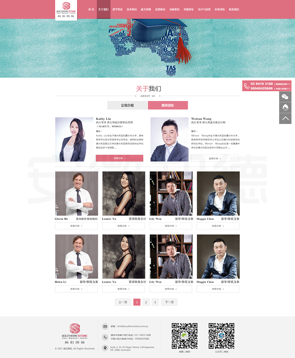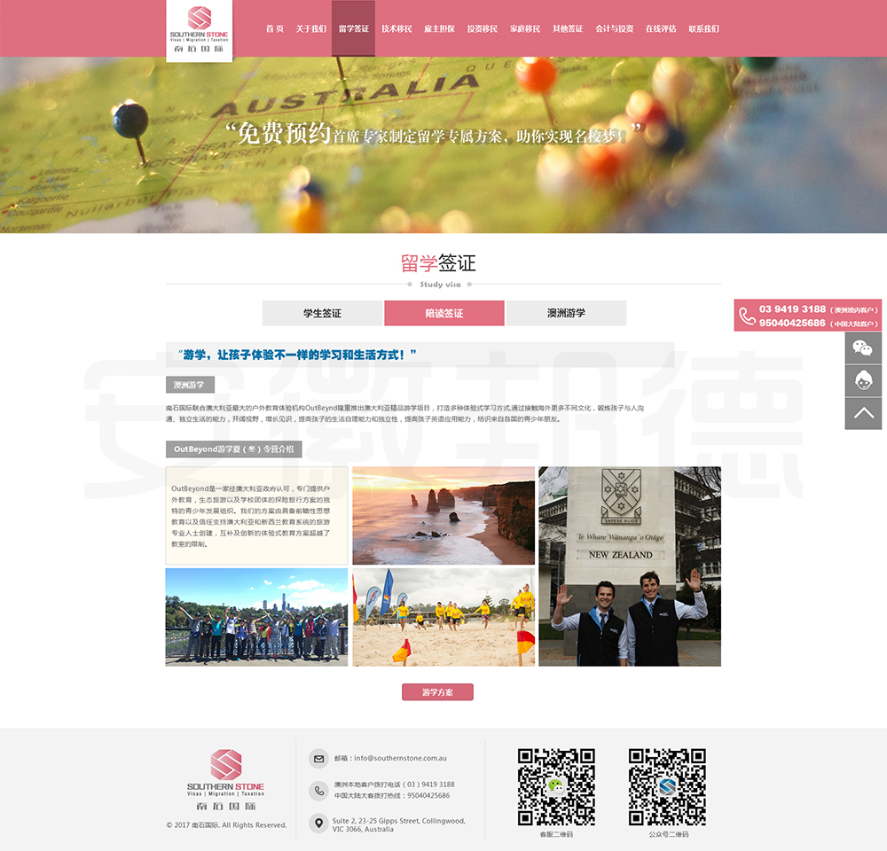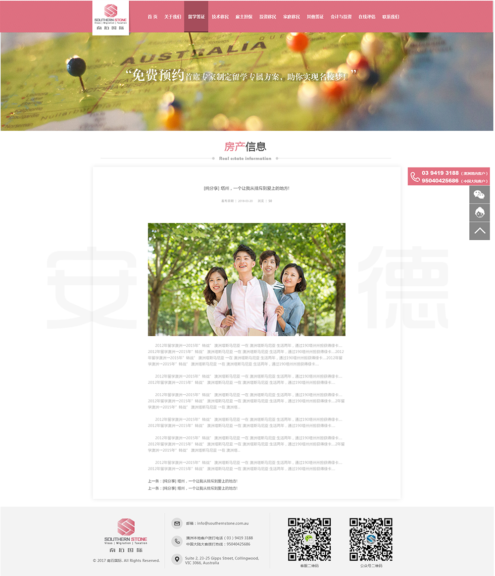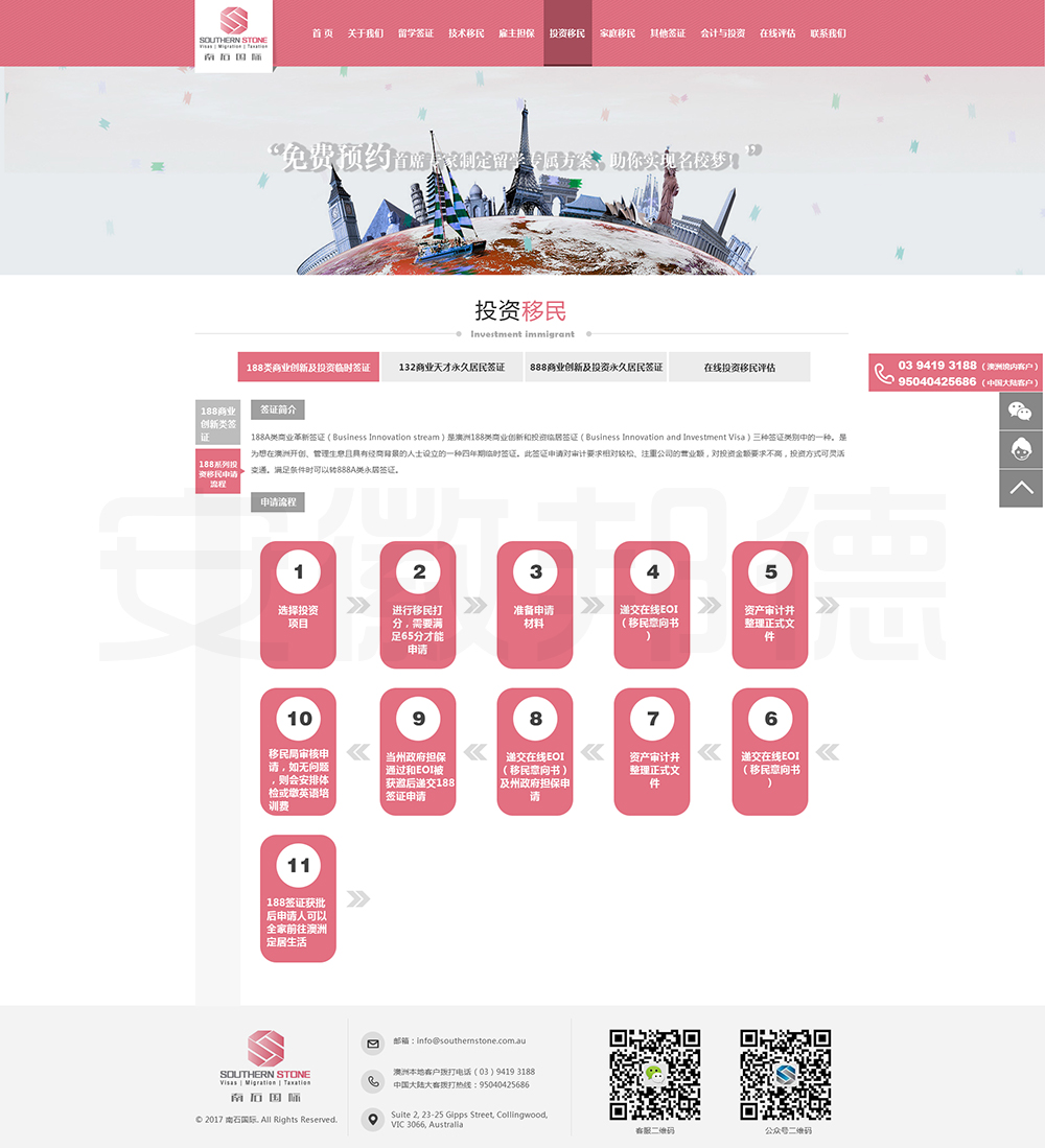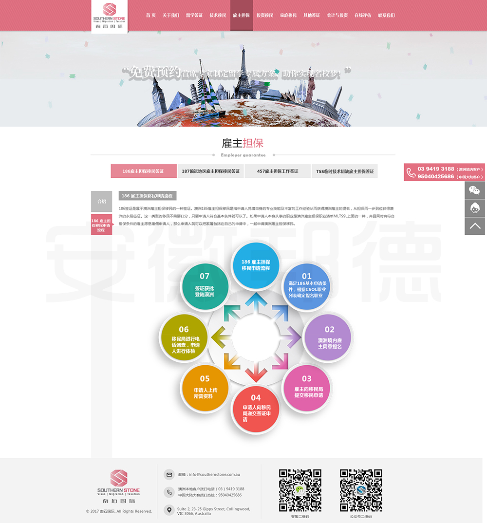 南石国际有限责任公司是一家经澳大利亚政府批准,在移民代理注册管理部门(OFFICE OF THE MARA)备案注册的移民咨询公司。我们的团队由专业的移民代理、留学教育代理、投资理财专家和从业经验丰富的员工组成。澳大利亚移民法条款繁多,内容复杂且瞬息万变;我们的团队严格遵守职业行为守则,时刻关注澳洲移民政策的最新动态,针对每一位客户的特点和要求量体裁衣,提供最便捷、最准备、最及时的签证和移民方案。邦德开发为客户提供网站效果图设计,